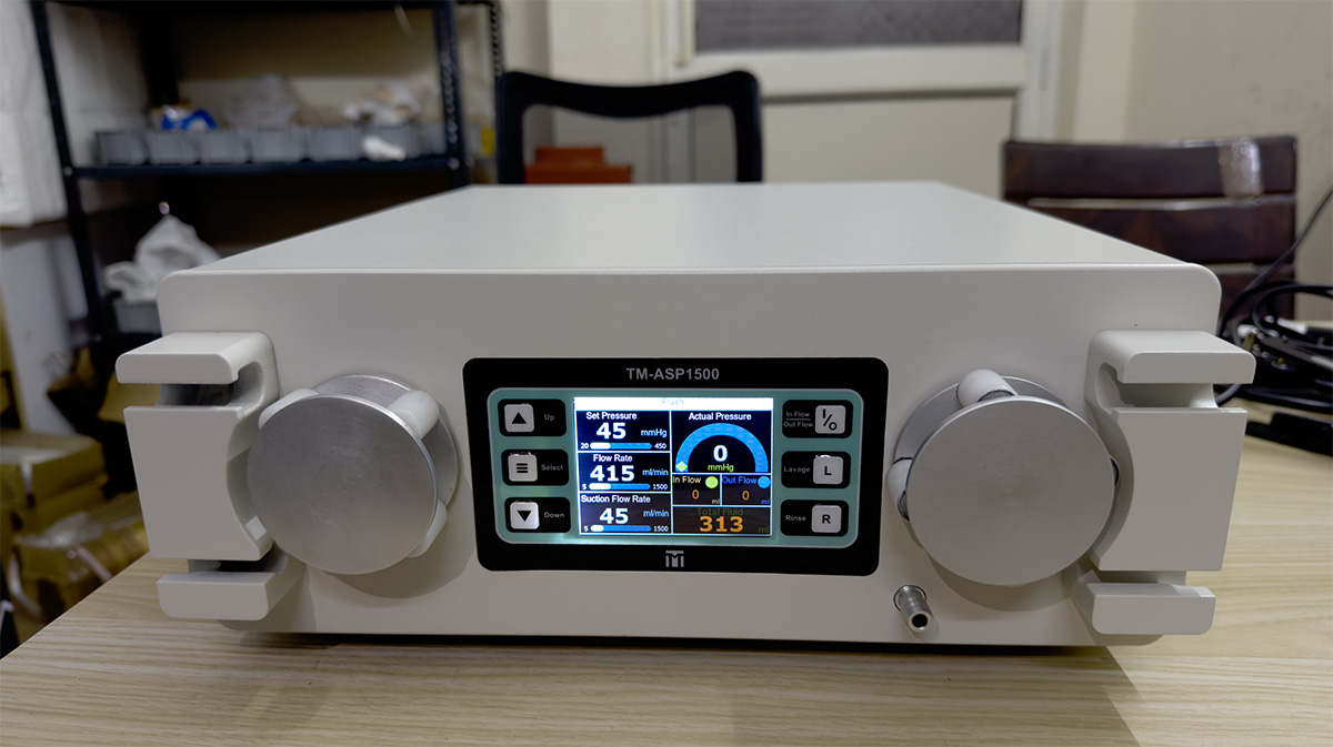 RINSE Button: Enhances outflow by 200 ml/min for 60 seconds, ensuring rapid clearing of the surgical field.
